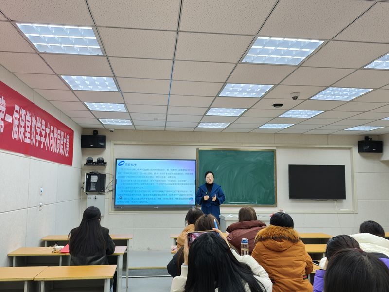 郑州市第二外国语中学七年级英语教师李岩针对Unit5 Fun Clubs Pronunciation进行了语音教学说课展示。李老师以主题意义探究和语音知识的学与练为两条主线,贯穿整个学习过程中。教师引导学生对主题意义的探究层层递进,由浅入深;学生对语音的学与练由音、词、句到真实情境中的长对话,由易到难,学练结合,贯穿始终。随后,李老师还分享了学校一直以来语音教学的一些成功的做法。