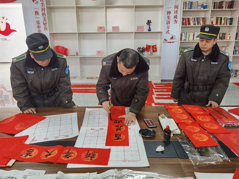 郑州市上街区工业路巡防中队开展了迎新春写春联、送祝福活动