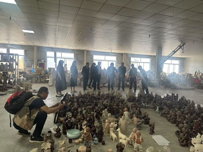 最后,专家组到烧制车间现场看到刚刚开窑的丹钧泥塑,看到作品自然的窑变,听到银铃般的开片声,专家组摄录下来,作为珍贵资料保存。张振福泥塑作品《晌午》《炕头瞧画书》《牧童短笛》《大丰收》等刻画出郸城地方特色的民间故事。