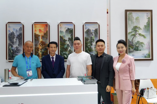 由云南瑞丽书颜画廊出品,由梁和生、满华为、沈良春三位大师联合创作的几十幅翡翠石画这次荣耀参展!并且被收藏者抢售一空!