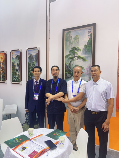 艺术大师在展馆现场,左起:梁和生、满华为、沈良春、刘起汛