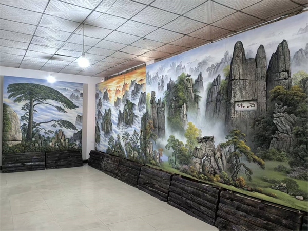 龙头“迎客松”和“石林风景”画部分已完成