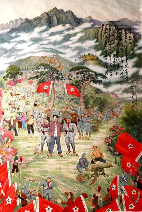 艺术成就方面,代表作《白桦林》获第三届全国美展银奖;历时二年完成的《井岗红旗颂》获央视军事频道专题报道,彰显时代气象;《云山无语听禅音》《太行清韵》等作品载入美国《星星之火·艺术·财富》书典,传递东方意境。此外,他为羲皇宾馆创作大型壁画《伏羲聖王》,并撰文《伏羲在我心中》,展现对中华文明源流的深入理解。