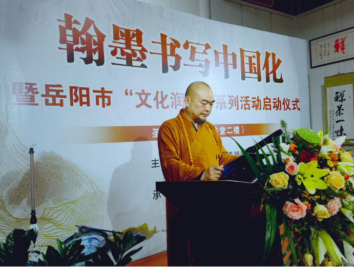 开幕式由岳阳市委统战部副部长、宗教局长徐煜主持,市委常委、统战部长邱虹讲话,中佛协副秘书长、湖南省佛协副会长、岳阳市佛协会长怀梵法师致词。