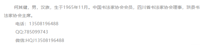 2015年,何其健被选为珙县书法家协会主席。在前几代人奠定的坚实基础上,他把珙县的书法搞得风生水起,一度时期成为宜宾市各区县的标杆,大家除了艳羡就是学习。